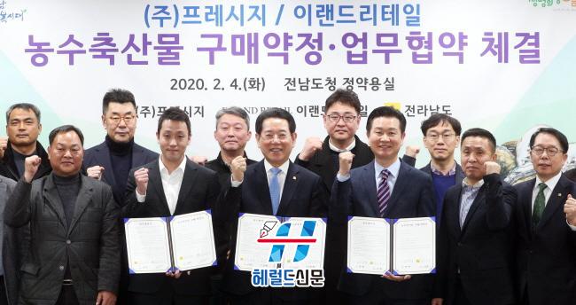 [Çì·²µå½Å¹® = ¹®»óÁØ ±âÀÚ] Àü¶ó³²µµ´Â 4ÀÏ µµÃ» Á¤¾à¿ë½Ç¿¡¼ ´ëÇü À¯Åë¾÷üÀÎ ÀÌ·£µå¸®Å×ÀÏÀ» ºñ·ÔÇØ ÇÁ·¹½ÃÁö¿Í ³óƯ»ê¹° ±¸¸Å¾àÁ¤°ú ÆÇ·ÎÈ®´ë¸¦ À§ÇÑ ¾÷¹«Çù¾àÀ» ü°áÇß´Ù.