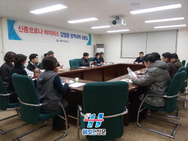[Çì·²µå½Å¹® = Àü¿µ±Ô ±âÀÚ] ±¤¾ç½Ãº¸°Ç¼Ò´Â Áö³ 5ÀÏ(¼ö) ¹æ¿ª´ëÃ¥»óȲ½Ç¿¡¼ ÀÌÁ¤Èñ ±¤¾ç½Ãº¸°Ç¼ÒÀå ÁÖÀç·Î ±¤¾ç½Ã ÀÇ»çȸ °ü°èÀÚµé°ú Áö¿ª»çȸ ½ÅÁ¾ Äڷγª¹ÙÀÌ·¯½º °¨¿°Áõ È®»ê¹æÁö¸¦ À§ÇÑ °£´ãȸ¸¦ °¡Á³´Ù°í ¹àÇû´Ù.