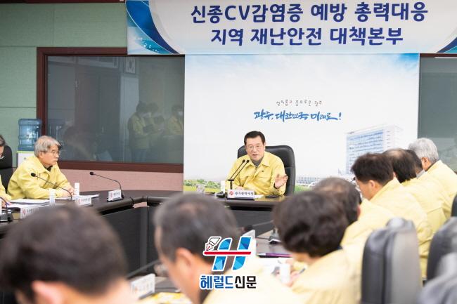 [Çì·²µå½Å¹® = Á¶ÀºÁ¤ ±âÀÚ] ±¤ÁÖ±¤¿ª½Ã´Â 8ÀÏ ½Ãû Àç³»óȲ½Ç¿¡¼ À̿뼷 ½ÃÀå ÁÖÀç·Î ±¤Áֽà ½Ç¡¤±¹Àå, 5°³ ÀÚÄ¡±¸ µîÀÌ Âü¼®ÇÑ ¡®±ä±Þ »óȲÁ¡°Ë ȸÀÇ¡¯¸¦ °³ÃÖÇÏ°í °¢ ½Ç¡¤±¹º° ½ÅÁ¾ Äڷγª¹ÙÀÌ·¯½º °¨¿°Áõ ´ëÀÀ ÃßÁø»óȲ°ú Á¶Ä¡°èȹ µîÀ» Á¡°ËÇß´Ù.
