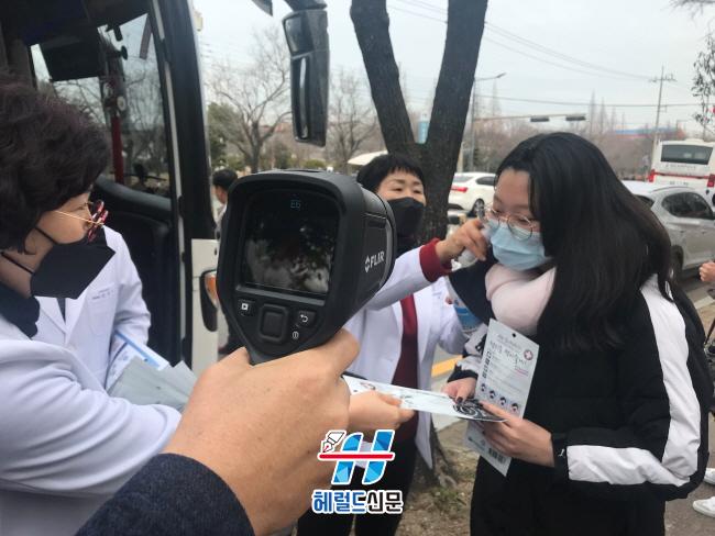 ƯÈ÷, ½Å¾È±ºÀº ½ÅÁ¾ Äڷγª¹ÙÀÌ·¯½º ºñ»óüÁ¦ÀÓÀ» °¨¾È ¹ÚÁ¾¿ ºÎ±º¼ö¸¦ ºñ·Ô º¸°Ç¼Ò, ±³À°º¹Áö°ú °ü°èÀÚµéÀÌ ÇöÀå¿¡ ³ª¿Í ÇлýµéÀ» ÅÂ¿î ¹ö½º¿¡ ´ëÇÑ ¼Òµ¶À» ½Ç½ÃÇϰí, Çлý °³Àκ°·Î ¿È»ó üũ, ¹ß¿Ã¼Å©¿Í ÇÔ²² ¸¶½ºÅ©¸¦ °³Àκ°·Î Áö±ÞÇϰí ÇØ¿Ü¿¬¼ö ÇлýµéÀ» Çкθðµé¿¡°Ô ÀεµÇÏ¿´´Ù.