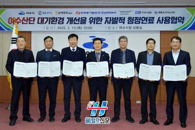 [Çì·²µå½Å¹® = Àü¿µ±Ô ±âÀÚ] ¿©¼ö½Ã(½ÃÀå ±Ç¿ÀºÀ)´Â 13ÀÏ ¿©¼ö½Ãû »óȲ½Ç¿¡¼ ´ëȵµ½Ã°¡½ºÁÖ½Äȸ»ç, ¿©¼ö±¹°¡»ê¾÷´ÜÁö Âü¿©±â¾÷ 5°³»ç¿Í ¡®¿©¼ö»ê´Ü ´ë±âȯ°æ °³¼±À» À§ÇÑ ÀÚ¹ßÀû ûÁ¤¿¬·á »ç¿ëÇù¾à¡¯À» ü°áÇß´Ù°í ¹àÇû´Ù.