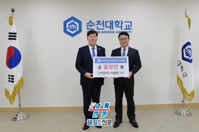 [Çì·²µå½Å¹® = Àü¿µ±Ô ±âÀÚ] ¼øÃµ´ëÇб³(ÃÑÀå °í¿µÁø)´Â 17ÀÏ »êÇÐÇù·Â´Ü ¼Ò¼Ó À̰©¿¬ ±³¼ö°¡ 2¿ù ¸» Á¤³âÅðÀÓÀ» ¾ÕµÎ°í ¹ßÀü±â±Ý 1õ¸¸ ¿øÀ» ±âŹÇß´Ù°í ¹àÇû´Ù.