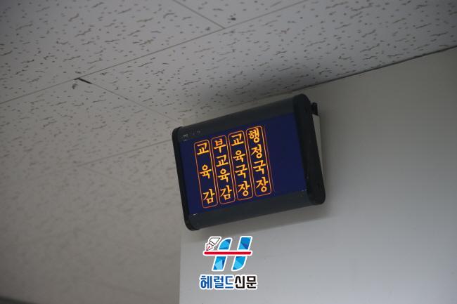 Àü³²µµ±³À°Ã»¿¡ µû¸£¸é, ÇöÀç Àç½Çµî(î¢ãøÔó)Àº °¢ »ç¹«½Ç º®¸é¿¡ LEDµîÀ¸·Î ¼³Ä¡µÅ ÀÖÀ¸¸ç ±³À°°¨°ú ºÎ±³À°°¨, ±³À°±¹Àå, ÇàÁ¤±¹ÀåÀÇ Àç½Ç ¿©ºÎ¸¦ Á÷¿øÀÌ Á÷Á¢ ¿Â¿ÀÇÁ ½ºÀ§Ä¡¸¦ ÀÛµ¿½ÃÄÑ ¾Ë·ÁÁÖ´Â ¹æ½ÄÀ¸·Î ¿î¿µµÇ°í ÀÖ´Ù.