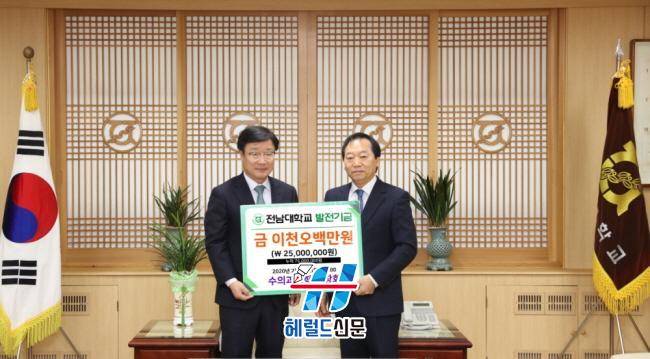 [Çì·²µå½Å¹® = ¹®»óÁØ ±âÀÚ] Àü³²´ëÇб³ ¼öÀǰú´ëÇÐ µ¿Ã¢È¸(ȸÀå ¼ÕÇØ¼ö)°¡ 2¿ù 25ÀÏ ¸ð±³¿¡ ´ëÇйßÀü±â±Ý 2õ5¹é¸¸¿øÀ» ±âŹÇß´Ù.