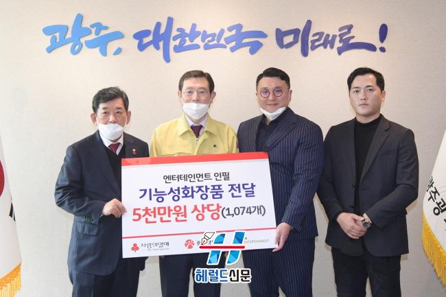 ¢ß¿£ÅÍÅ×ÀÎ¸ÕÆ® ÀÎÇÊÀº ½ºÅ², ·Î¼Ç, Ŭ·»Àú µîÀ¸·Î ±¸¼ºµÈ ÈÀåǰ¼¼Æ® 5000¸¸¿ø »ó´çÀ» ±¤ÁÖ»çȸº¹Áö°øµ¿¸ð±Ýȸ¿¡ ±âºÎÇß´Ù.