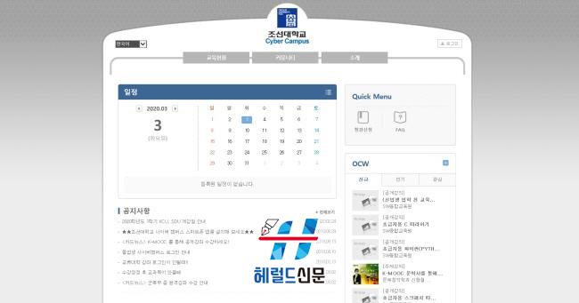 [Çì·²µå½Å¹® = ¹®»óÁØ ±âÀÚ] Á¶¼±´ëÇб³´Â 2020Çг⵵ 1Çбâ 1, 2ÁÖÂ÷ °ÀǸ¦ ¿Â¶óÀÎ °ÀÇ·Î ´ëüÇϱâ·Î Çß´Ù.