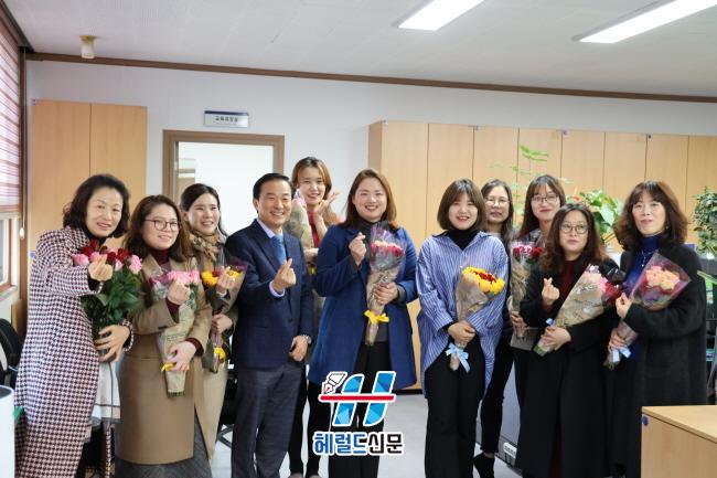 [Çì·²µå½Å¹® = ¹®»óÁØ ±âÀÚ] ¿µ±¤±³À°Áö¿øÃ»(±³À°Àå Çã È£)Àº 6ÀÏ ´Ù°¡¿À´Â ¼¼°è¿©¼ºÀÇ ³¯(8ÀÏ)À» ¸Â¾Æ ÈÈÑ³ó°¡ »ì¸®±â Ä·ÆäÀο¡ µ¿ÂüÇÏ°í ¿©¼ºÁ÷¿øµéÀÇ ³ë°í¸¦ °Ý·ÁÇϱâ À§ÇØ ²É´Ù¹ßÀ» ¼±¹°Çß´Ù.