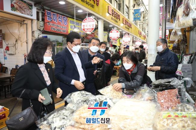 ¿©¼ö ¼½ÃÀåÀ» ¹æ¹®ÇÑ ÀÇ¿øµéÀº À̳¯ »óÀεéÀ» ¸¸³ª °íÃæÀ» µè±â À§ÇØ °£´ãȸ¸¦ °®°í »ó°¡¸¦ µ¹¸ç Àç·¡½ÃÀå ¼ÒºñÃËÁøÀ» À§ÇÑ À庸±â Çà»ç¸¦ ÆîÃÆ´Ù.