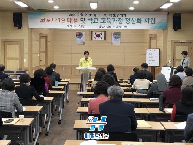 [Çì·²µå½Å¹® = ¹®»óÁØ ±âÀÚ] ³ªÁÖ±³À°Áö¿øÃ»(±³À°Àå ±è¿µ±æ)Àº 3¿ù 16ÀÏ(¿ù), ³ªÁÖ±³À°Áö¿øÃ» ´ëȸÀǽǿ¡¼ À¯?ÃÊ?Áß?°íµîÇб³ ¹× Ư¼öÇб³ ±³(¿ø)Àå 63¸í°ú ÇÔ²² ¡®Äڷγª19 ´ëÀÀ ¹× Çб³ ±³À°°úÁ¤ Á¤»óÈ Áö¿ø °È¡¯¸¦ À§ÇÑ È¸ÀǸ¦ ½Ç½ÃÇÏ¿´´Ù.