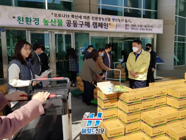 [Çì·²µå½Å¹® = ¹®»óÁØ ±âÀÚ] Àü¶ó³²µµ±³À°Ã»(±³À°°¨ Àå¼®¿õ)ÀÌ Äڷγª19·Î ¾î·Á¿òÀ» °Þ°í ÀÖ´Â ³ó°¡¸¦ µ½°í, ģȯ°æ ³ó»ê¹° ¼Òºñ¸¦ ÃËÁøÇϱâ À§ÇÑ ¡®Ä£È¯°æ ³ó»ê¹° °øµ¿±¸¸Å Ä·ÆäÀΡ¯¿¡ µ¿ÂüÇß´Ù.
