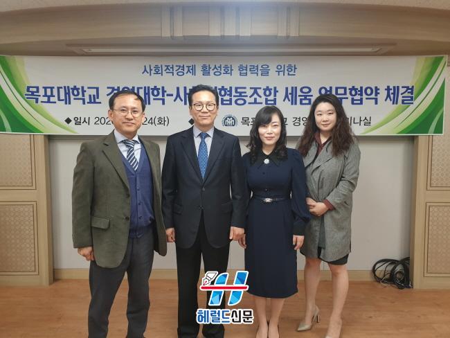 [Çì·²µå½Å¹® = ¹®»óÁØ ±âÀÚ] ±¹¸³¸ñÆ÷´ëÇб³(ÃÑÀå ¹Ú¹Î¼) °æ¿µ´ëÇаú »çȸÀû°æÁ¦ ¿¬±¸±â°üÀÎ »çȸÀûÇùµ¿Á¶ÇÕ ¼¼¿òÀº 3¿ù 24ÀÏ(È) 15:00¿¡ ¸ñÆ÷´ëÇб³ »çȸ°úÇаü ¼¼¹Ì³ª½Ç¿¡¼ »çȸÀû°æÁ¦ÀÇ È°¼ºÈ¸¦ À§ÇØ Àå±âÀû Çù·ÂÀ» ÃßÁøÇϱâ À§ÇÑ ¾÷¹« Çù¾à½ÄÀ» ü°áÇß´Ù.