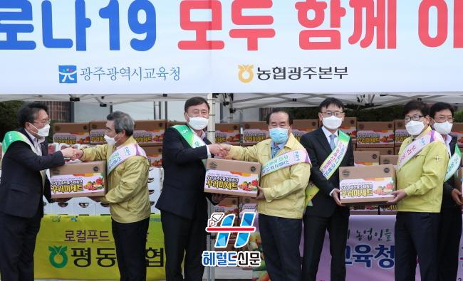 [Çì·²µå½Å¹® = ¹®»óÁØ ±âÀÚ] ±¤ÁÖ±¤¿ª½Ã±³À°Ã»(±³À°°¨ ÀåÈÖ±¹) ±³Á÷¿øµéÀÌ Äڷγª19·Î (Çб³ ±Þ½Ä µîÀÌ ÁøÇàµÇÁö ¾Ê¾Æ) ÆÇ·Î°¡ ¸·Çô À§±â¸¦ °Þ°í ÀÖ´Â ³ó°¡¸¦ µ½±â À§ÇØ 3¿ù27ÀϺÎÅÍ 4¿ù5ÀϱîÁö ´ë±Ô¸ð ³óÃà»ê¹° ±¸¸Å¿¡ µé¾î°¬´Ù.