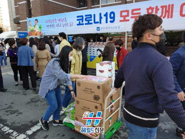 Áö³ 27ÀÏ ±¤Áֽñ³À°Ã» º»°ü ¾Õ°ú µ¿¡¤¼ºÎ±³À°Áö¿øÃ»¿¡¼ ¿¸° ³óÃà»ê¹° ±¸¸Å Çà»ç¿¡¼± ¸î ½Ã°£ ¸¸¿¡ ³ó»ê¹° ²Ù·¯¹Ì 341»óÀÚ, ½Ò 10kg 56Æ÷´ë, µþ±â 242»óÀÚ, Ű¿ö 202ºÀÁö°¡ ÆÇ¸ÅµÆ´Ù. ½Ã±³À°Ã» °ü°èÀÚ´Â ¡°Á÷¿øµéÀÌ ³ó°¡ µ½±â¿¡ ¾ÕÀå¼¼ ¸¹ÀÌ ±¸¸ÅÇß´Ù¡±¸ç ¡°±¸¸ÅÇÑ ³óÃà»ê¹° ǰÁúµµ ÁÁ¾Ò´Ù¡±°í ÀüÇß´Ù.