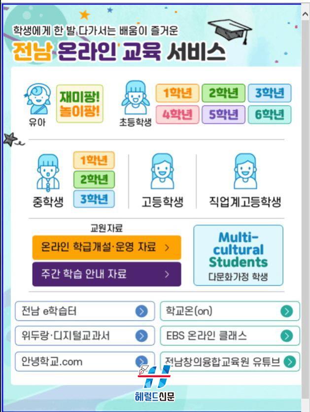 [Çì·²µå½Å¹® = ¹®»óÁØ ±âÀÚ] Àü¶ó³²µµ±³À°Ã»(±³À°°¨ Àå¼®¿õ)ÀÌ Äڷγª19·Î ÀÎÇØ ÈÞ¾÷ÀÌ Àå±âÈÇϰí ÀÖ´Â °¡¿îµ¥ Çѱ¹¾î°¡ ¼Å÷ Àü³²ÀÇ ´Ù¹®È°¡Á¤ Çлýµé¿¡°Ôµµ ¿Â¶óÀÎ ±³À° ¼ºñ½º¸¦ Á¦°øÇÏ°í ³ª¼¹´Ù.