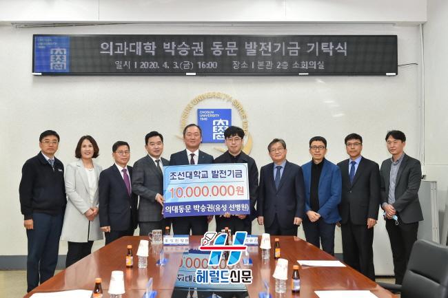 3ÀÏ Á¶¼±´ëÇб³´Â Àǰú´ëÇÐ µ¿¹®ÀÎ ¹Ú½Â±Ç(36) À¯¼º ¼±º´¿ø Á÷¾÷ȯ°æÀÇÇм¾ÅÍ Áø·á°úÀåÀ¸·ÎºÎÅÍ ¹ßÀü±â±Ý 1000¸¸¿øÀ» ±âŹ ¹Þ¾Ò´Ù. ±âʽÄÀº À̳¯ ¿ÀÈÄ 4½Ã Á¶¼±´ëÇб³ º»°ü ¼ÒȸÀǽǿ¡¼ °³ÃֵƴÙ.
