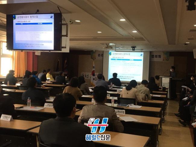 [Çì·²µå½Å¹® = Àü¿µ±Ô ±âÀÚ] ¼øÃµ±³À°Áö¿øÃ»(±³À°Àå À̱æÈÆ)Àº Äڷγª19 È®»ê ¹æÁö¸¦ À§ÇØ Ã³À½ ½Ç½ÃµÇ´Â ¿Â¶óÀÎ °³ÇÐÀÌ ÀÌÆ² ¾ÕÀ¸·Î ´Ù°¡¿Â °¡¿îµ¥ 7ÀÏ ¿ÀÀü ´ëȸÀǽǿ¡¼ ÁßÇб³ ±³°¨ ¹× ¾÷¹«´ã´çÀÚ¿Í ÇÔ²² ¿Â¶óÀÎ °³ÇÐÀ¸·Î ÀÎÇÑ È¥¶õ°ú ¼ö¾÷ °ø¹éÀ» ÃÖ¼ÒÈÇϱâ À§ÇÑ ¿ø°Ý¼ö¾÷ Áغñ »óȲÀ» Á¡°ËÇϰí ÇöÀå°ú ¼ÒÅëÇÏ´Â ½Ã°£À» °¡Á³´Ù.