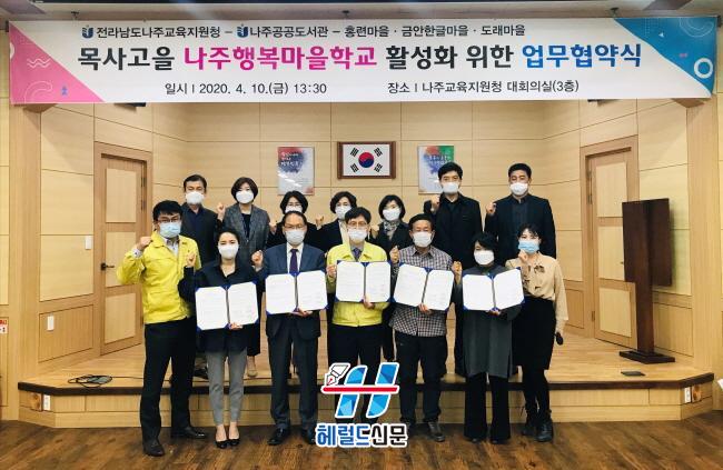 [Çì·²µå½Å¹® = ¹®»óÁØ ±âÀÚ] ³ªÁÖ±³À°Áö¿øÃ»(±³À°Àå ±è¿µ±æ)Àº ¸¶À»±³À°°øµ¿Ã¼ Ȱ¼ºÈ ¹× ¸ñ»ç°íÀ» ³ªÁÖÇູ¸¶À»Çб³ ³»½ÇÈ Áö¿øÀ» À§ÇØ 4¿ù 10ÀÏ(±Ý) ³ªÁÖ±³À°Áö¿øÃ» ´ëȸÀǽǿ¡¼ ³ªÁÖ°ø°øµµ¼°ü, È«·Ã¸¶À», ±Ý¾ÈÇѱ۸¶À», µµ·¡¸¶À»°ú ÇÔ²² ¾÷¹«Çù¾à(MOU)À» ü°áÇÏ¿´´Ù.