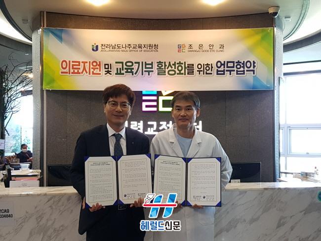 [Çì·²µå½Å¹® = ¹®»óÁØ ±âÀÚ] ³ªÁÖ±³À°Áö¿øÃ»(±³À°Àå ±è¿µ±æ)Àº 27ÀÏ(¿ù) ±¤ÁÖ ³²±¸ ¼ÒÀç Á¶Àº¾È°ú(´ëÇ¥¿øÀå ±è¼ºÁÖ)¿Í ÀÇ·áÁö¿ø ¹× ±³À°±âºÎ Ȱ¼ºÈ¸¦ À§ÇÑ ¾÷¹«Çù¾àÀ» ü°áÇÏ¿´´Ù.