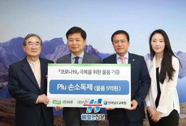 Àü³² ¼øÃµ½Ã ¼ÒÀç ¾÷üÀÎ ¢ßÆÄ·ç(´ëÇ¥ÀÌ»ç °¹®½Ä) ¹× ¢ßÁöº»ÄÚ½º¸Þƽ(´ëÇ¥ÀÌ»ç ¹Ú»ó¿ë)°¡ 5¾ï¿ø »ó´çÀÇ ¼Õ¼Òµ¶Á¦¸¦ Àü¶ó³²µµ±³À°Ã»¿¡ ±âºÎÇß´Ù.