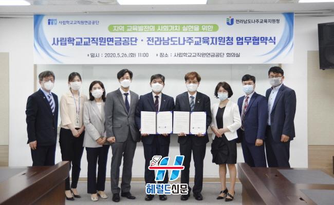 [Çì·²µå½Å¹® = ¹®»óÁØ ±âÀÚ] ³ªÁÖ±³À°Áö¿øÃ»(±³À°Àå ±è¿µ±æ)°ú »ç¸³Çб³±³Á÷¿ø¿¬±Ý°ø´Ü(ÀÌ»çÀå ÁÖ¸íÇö)Àº Áö³ 26ÀÏ »ç¸³Çб³±³Á÷¿ø¿¬±Ý°ø´Ü(ÀÌÇÏ »çÇבּÝ) ȸÀǽǿ¡¼ ³ªÁÖ ±³À°È¯°æ ¹ßÀüÀ» À§ÇÑ ¾÷¹«Çù¾àÀ» ü°áÇÏ¿´´Ù.