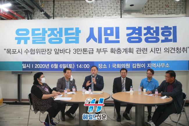[Çì·²µå½Å¹® = ¹®»óÁØ ±âÀÚ] ±è¿øÀÌ ´õºÒ¾î¹ÎÁÖ´ç ±¹È¸ÀÇ¿ø(Àü³² ¸ñÆ÷½Ã)Àº 6ÀÏ ¿ÀÈÄ 2½Ã ¸ñÆ÷ Áö¿ª»ç¹«½Ç¿¡¼ ¡°¸ñÆ÷½Ã ¼öÇùÀ§ÆÇÀå ¾Õ¹Ù´Ù 3¸¸ Åæ±Þ ºÎµÎ È®Ãæ°èȹ °ü·Ã ½Ã¹Î ÀÇ°ß Ã»Ã롱¶ó´Â ÁÖÁ¦·Î ù ¹øÂ° ¡®À¯´ÞÁ¤´ã¡¯À» °³ÃÖÇß´Ù.