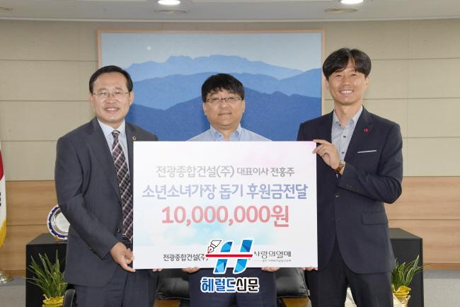 Àü±¤Á¾ÇհǼ³(ÁÖ)´Â Äڷγª19 À§±â»óȲÀ¸·Î ÀÎÇØ ´õ¿í ¾î·Á¿òÀ» °Þ°í ÀÖ´Â ¼Ò³â¼Ò³à°¡ÀåÀ» µ½°íÀÚ ÀÌ ³¯ 1,000¸¸¿øÀ» »çȸº¹Áö°øµ¿¸ð±Ýȸ¿¡ ÁöÁ¤±âŹ Çß´Ù.