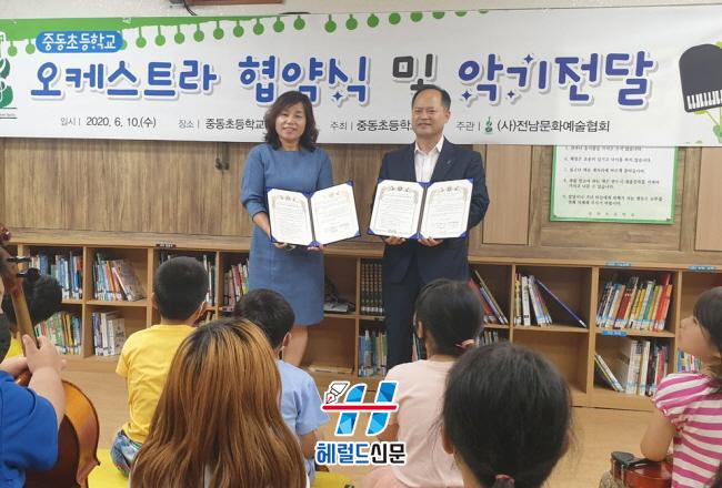 [Çì·²µå½Å¹® = Àü¿µ±Ô ±âÀÚ] Áö¸®»ê ÀÚ¶ôÀÇ Çлý ¼ö 30¸íÀÌ Ã¤ ¾È µÇ´Â ÀÛÀº Çб³¿¡ ¿ÀÄɽºÆ®¶ó°¡ â´ÜÇØ °ü½ÉÀ» ¸ðÀ¸°í ÀÖ´Ù. ¸¸º¹´ë ¾Æ·¡ÀÇ »ê¼öÀ¯ ¸¶À»¿¡ ÀÚ¸®ÇÑ Áßµ¿ÃʵîÇб³(±³Àå À±¹Ì¼÷)´Â Áö³ 10ÀÏ Àü³²¹®È¿¹¼úÀÎÇùȸ(´ëÇ¥ È«ÀÇÇö)°ú »óÈ£ Çù¾à(MOU)À» ¸Î¾î, 28¸í Àü±³»ý¿¡ ´ëÇØ ¾Ç±â Áö¿ø°ú ¿¬ÁÖÁöµµ¸¦ ¹«·á·Î Áö¿ø¹Þ±â·Î Çß´Ù.