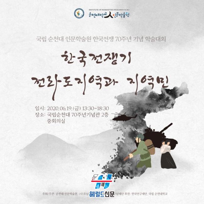 [Çì·²µå½Å¹® = Àü¿µ±Ô ±âÀÚ] ¼øÃµ´ëÇб³(ÃÑÀå °í¿µÁø) Àι®Çмú¿øÀÌ ¿À´Â 19ÀÏ(±Ý) ±³³» 70ÁÖ³â±â³ä°ü 2Ãþ ÁßȸÀǽǿ¡¼ Çѱ¹ÀüÀï 70³âÀ» ¸ÂÀÌÇÏ¿©¡®Çѱ¹ÀüÀï±â Àü¶óµµÁö¿ª°ú Áö¿ª¹Î'À» ÁÖÁ¦·Î Çмú´ëȸ¸¦ °³ÃÖÇÑ´Ù°í 15ÀÏ ¹àÇû´Ù.