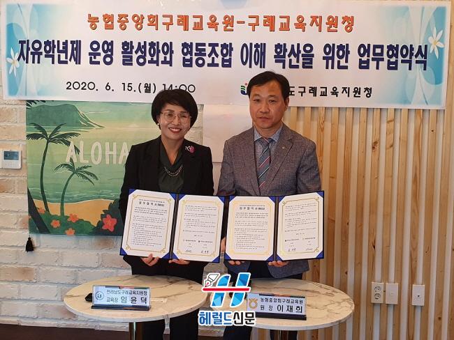 [Çì·²µå½Å¹® = ¹®»óÁØ ±âÀÚ] ±¸·Ê±³À°Áö¿øÃ»(±³À°Àå ÀÓÀ±´ö)Àº Áö³ 6¿ù 15ÀÏ(¿ù) ±¸·Ê±³À°Áö¿øÃ» ¡®¾ÆÀÌ »ç¶û¡¯Ä«Æä¿¡¼ ³óÇù±¸·Ê±³À°¿ø(¿øÀå ÀÌÀçÈñ)°ú ¾÷¹«Çù¾àÀ» ü°áÇϰí, Áø·Î±³À° ¹× ÀÚÀ¯ÇгâÁ¦ Ȱ¼ºÈ Áö¿øÀ» À§ÇØ Çù·ÂÇϱâ·Î ÇÏ¿´´Ù.