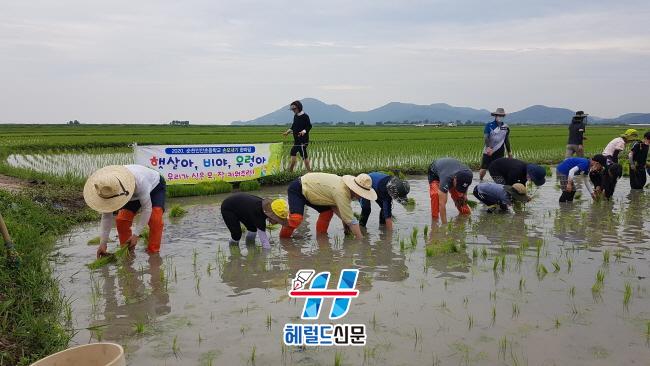 ¿ÃÇØ´Â Äڷγª19 À§±â¸¦ ÇÔ²² ±Øº¹ÇÏÀÚ´Â ÃëÁö·Î Çã¼® ¼øÃµ½ÃÀå°ú À̱æÈÆ ¼øÃµ±³À°ÀåÀÌ ¼Õ¸ð³»±â¿¡ ÇÔ²² Âü¿©Çؼ ´õ¿í ¶æ±íÀº Çà»ç°¡ µÇ¾ú´Ù.