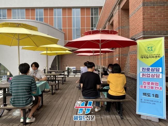 Àü³²´ë ´ëÇÐÀÏÀÚ¸®¼¾ÅÍ(¼¾ÅÍÀå ÀÌÀç¿)´Â ±×µ¿¾È °íÁ¤µÈ Àå¼Ò¿¡¼¸¸ ÁøÇàµÇ´ø Áø·ÎÃë¾÷»ó´ãÀ» ÇлýµéÀÇ Á¢±Ù¼º°ú À¯µ¿¼ºÀÌ ¶Ù¾î³ Áß¾Óµµ¼°ü ¾Õ ³ëõīÆä¿¡¼ ¡®Áø·Î½É¸®Ä«Æä¡¯¸¦ ¿î¿µÇϰí ÀÖ´Ù.