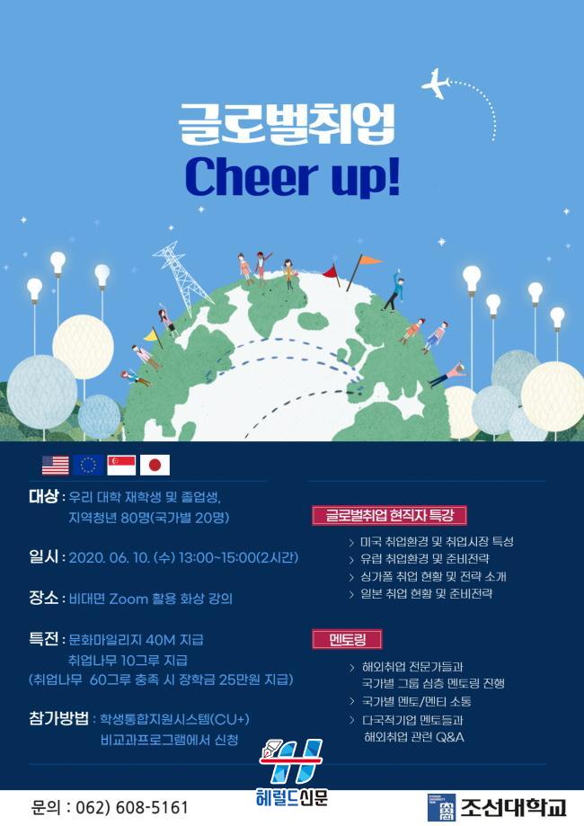 [Çì·²µå½Å¹® = ¹®»óÁØ ±âÀÚ] Á¶¼±´ëÇб³ ´ëÇÐÀÏÀÚ¸®¼¾ÅͰ¡ Áö³ 10ÀÏ ÀçÇлý ¹× Á¹¾÷»ýÀ» ´ë»óÀ¸·Î ¹Ì±¹, À¯·´, ½Ì°¡Æú, ÀϺ» 4°³±¹ÀÇ ÇØ¿ÜÁøÃâ Á¤º¸¸¦ ½ÀµæÇϰí, ÇØ¿ÜÃë¾÷ ¿ª·®À» °ÈÇÏ´Â ¡®±Û·Î¹úÃë¾÷ Cheer Up!¡¯ ÇÁ·Î±×·¥À» ÁøÇàÇß´Ù.