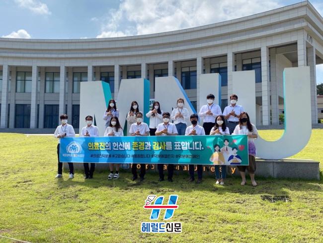 Áö³ 19ÀÏ È£³²´ë LINC+»ç¾÷´Ü(¾ç½ÂÇÐ ´ÜÀå)À¸·ÎºÎÅÍ Áö¸ñÀ» ¹Þ¾Æ ¸ñÆ÷´ë LINC+»ç¾÷´Ü ´ÜÀå°ú ±³Á÷¿øµéÀÌ 70Áֳ⠱â³ä°ü ¾Õ¿¡¼ Äڷγª19 Àå±âÈ·Î °í»ýÇÏ´Â ÀÇ·áÁø¿¡ ´ëÇÑ °í¸¶¿ò°ú Á¸°æÀ» ´ãÀº ¼ö¾î¸¦ ÃëÇØ ÀÇ·áÁø¿¡ ´ëÇÑ °¨»çÇÔÀ» Àü´ÞÇß´Ù.