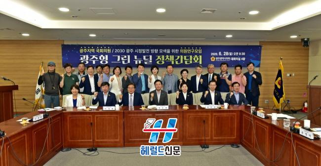 À̳¯ Âü¼®ÇÑ ½ÃÀÇ¿øµéÀº ±¤ÁÖÁö¿ª ±¹È¸ÀÇ¿øµé¿¡°Ô ¡®ÀÇ¿ø¿¬±¸¸ðÀÓÀÇ ÃëÁö¡¯¿Í ÇÔ²² Áö±Ý±îÁö ³íÀÇÇÑ ¡®±¤ÁÖÇü ±×¸° ´ºµô »ç¾÷ Á¤Ã¥(¿¡³ÊÁö ºÐ¾ß µî ÃÑ10°³ ºÐ¾ß)¡¯À» ºÐ¾ßº°·Î ¹ßÇ¥ÇÑ ÈÄ ³»³âµµ Á¤ºÎ ¿¹»ê¿¡ ¹Ý¿µµÉ ¼ö ÀÖµµ·Ï ±¹È¸Â÷¿ø¿¡¼ ÈûÀ» ½Ç¾îÁÖ½Ç °ÍÀ» °ÇÀÇÇß´Ù.