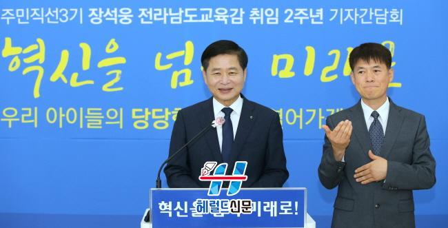[Çì·²µå½Å¹® = ¹®»óÁØ ±âÀÚ] Àå¼®¿õ Àü¶ó³²µµ±³À°°¨ÀÌ 6¿ù 29ÀÏ(¿ù) ¿ÀÀü Àü¶ó³²µµ±³À°Ã» 2Ãþ ´ëȸÀǽǿ¡¼ ÃëÀÓ 2Áֳ⠱â³ä ºñ´ë¸é ±âÀÚ ºê¸®ÇÎÀ» °®°í¡®¸ðµÎ°¡ ºû³ª´Â Áö¼Ó°¡´ÉÇÑ Àü³² ¹Ì·¡±³À°¡¯µµ¾à ÀÇÁö¸¦ õ¸íÇß´Ù.