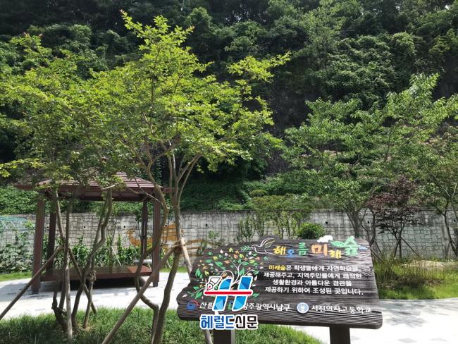 ¼Áø¿©ÀÚ°íµîÇб³´Â Áö³ÇØ ³²±¸Ã»°ú ÇÔ²² Çб³ µÚÆí ÀÚÅõ¸®(346.2m2) ¶¥¿¡ ¸ñ·Ã ³ª¹« ¿Ü 17Á¾ 425ÁÖ, ±Ý³¶È µî 3,340º»À» ½ÄÀçÇØ ¹Ì·¡ ½£ ȯ°æÀ» Á¶¼ºÇß°í, Á¤ÀÚ¿Í º¥Ä¡ µîÀ» ¼³Ä¡ÇØ Çлý ¹× Áö¿ª Áֹε鿡°Ô ½°Å͸¦ Á¦°øÇß´Ù.