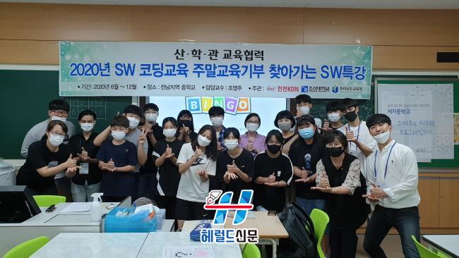 [Çì·²µå½Å¹® = ¹®»óÁØ ±âÀÚ] Á¶¼±´ëÇб³ SWÁ߽ɴëÇлç¾÷´ÜÀÌ ÇÑÀüKDN°ú Àü³²µµ±³À°Ã»°ú °øµ¿À¸·Î ÁÖ°üÇÏ¿© ¿î¿µ ÁßÀÎ ¡®2020³â SWÄÚµù±³À° ÁÖ¸»±³À°±âºÎȰµ¿¡¯ÀÌ Âü¿© Çлý°ú ±³»çµé·ÎºÎÅÍ È£ÀÀÀ» ¾ò°í ÀÖ´Ù.