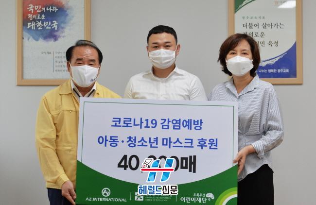 [Çì·²µå½Å¹® = ¹®»óÁØ ±âÀÚ] ±¤Áֽñ³À°Ã»ÀÌ ¢ß¿¡ÀÌÁ¦ÀÌ ÀÎÅͳ»¼Å³Î(´ëÇ¥ ±è ºÀ)·ÎºÎÅÍ 2,000¸¸ ¿ø »ó´ç(¼ÒºñÀÚ°¡°Ý)ÀÇ ¡®ÀÏȸ¿ë ¸¶½ºÅ©¡¯ 4¸¸ ¸Å¸¦ ±³À°°¨½Ç¿¡¼ 13ÀÏ Àü´Þ¹Þ¾Ò´Ù.