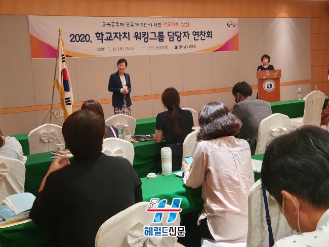 [Çì·²µå½Å¹® = ¹®»óÁØ ±âÀÚ] Àü¶ó³²µµ±³À°Ã»(±³À°°¨ Àå¼®¿õ)ÀÌ 16ÀÏ(¸ñ) ¿ÀÈÄ ¿µ¾Ï Çö´ëÈ£ÅÚ¿¡¼ 2020. Çб³ÀÚÄ¡ ¿öÅ·±×·ì ¿î¿µ ±³¿ø°ú ±³À°Áö¿øÃ» Çб³ÀÚÄ¡ ´ã´ç ÀåÇÐ»ç µî 34¸íÀÌ Âü¼®ÇÑ °¡¿îµ¥ ¡®±³À°°øµ¿Ã¼, Çб³ÀÚÄ¡¸¦ ¸¸³ª´Ù¡¯¶ó´Â ÁÖÁ¦·Î ¿¬Âùȸ¸¦ °¡Á³´Ù.