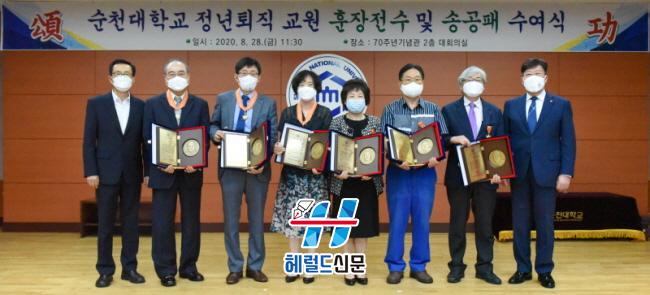 [Çì·²µå½Å¹® = Àü¿µ±Ô ±âÀÚ] ¼øÃµ´ëÇб³(ÃÑÀå °í¿µÁø)°¡ 28ÀÏ 70ÁÖ³â±â³ä°ü ´ëȸÀǽǿ¡¼ 8¿ù ¸» ÅðÀÓ ±³¿ø 8¸í¿¡ ´ëÇÑ Á¤³âÅðÀÓ Çà»ç¸¦ °³ÃÖÇÏ¿´´Ù°í ¹àÇû´Ù.
