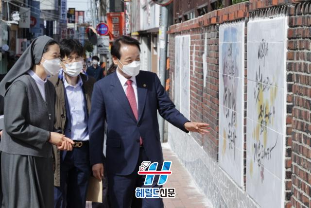 µ¿±¸´Â ¡®°È°í ½ÍÀº Á¶´ë Àå¹ÌÀÇ °Å¸®¡¯¸¦ Á¶¼ºÇϰíÀÚ º¸µµÈ¯°æ °³¼±»ç¾÷À» ÅëÇØ »ì·¹½Ã¿À¿©°í Á¤¹®°ú Á¶´ë ÈĹ® 265m ±¸°£ ´ãº¶ô¿¡ ŸÀÏ º®È±æÀ» Á¶¼ºÇß´Ù. º®È ½Ã¾ÈÀº Á¶´ë Àå¹ÌÀÇ °Å¸®»óÀÎȸ¿Í »ì·¹½Ã¿À¿©°í·ÎºÎÅÍ ´Ù¾çÇÑ ÀǰßÀ» ¼ö·ÅÇØ °áÁ¤Çß´Ù.