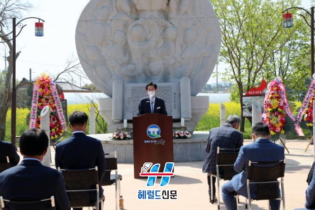 °í⵿Çгó¹ÎÇõ¸í±â³ä»ç¾÷ȸ¿Í µ¿Çгó¹ÎÇõ¸í¹«Àå±âÆ÷±â³äÁ¦ÃßÁøÀ§¿øÈ¸°¡ °øµ¿À¸·Î ÁÖÃÖÇÑ Çà»ç¿¡´Â À¯±â»ó °íⱺ¼ö, ÃÖÀÎ±Ô °íⱺÀÇȸ ±ºÀÇÀå ¹× ±ºÀÇ¿ø, À±Áغ´ ±¹È¸ÀÇ¿ø, ¼º°æÂù¡¤±è¸¸±â ÀüºÏµµÀÇ¿ø, °í⵿Çгó¹ÎÇõ¸í±â³ä»ç¾÷ȸ, °í⵿Çгó¹ÎÇõ¸í À¯Á·È¸ µî 50¿©¸íÀÌ Âü¿©ÇØ µ¿Çгó¹ÎÇõ¸íÀÇ ¼þ°íÇÑ Á¤½ÅÀ» µÇ»õ°å´Ù.