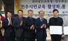 [Çì·²µå½Å¹® = ¹®»óÁØ ±âÀÚ] Àü¶ó³²µµ±³À°Ã»(±³À°°¨ Àå¼®¿õ)ÀÌ ¹ÎÁÖȿ±â³ä»ç¾÷ȸ(ÀÌ»çÀå Áö¼±)¿Í ¼ÕÀ» Àâ°í Çб³¹Î¡¦